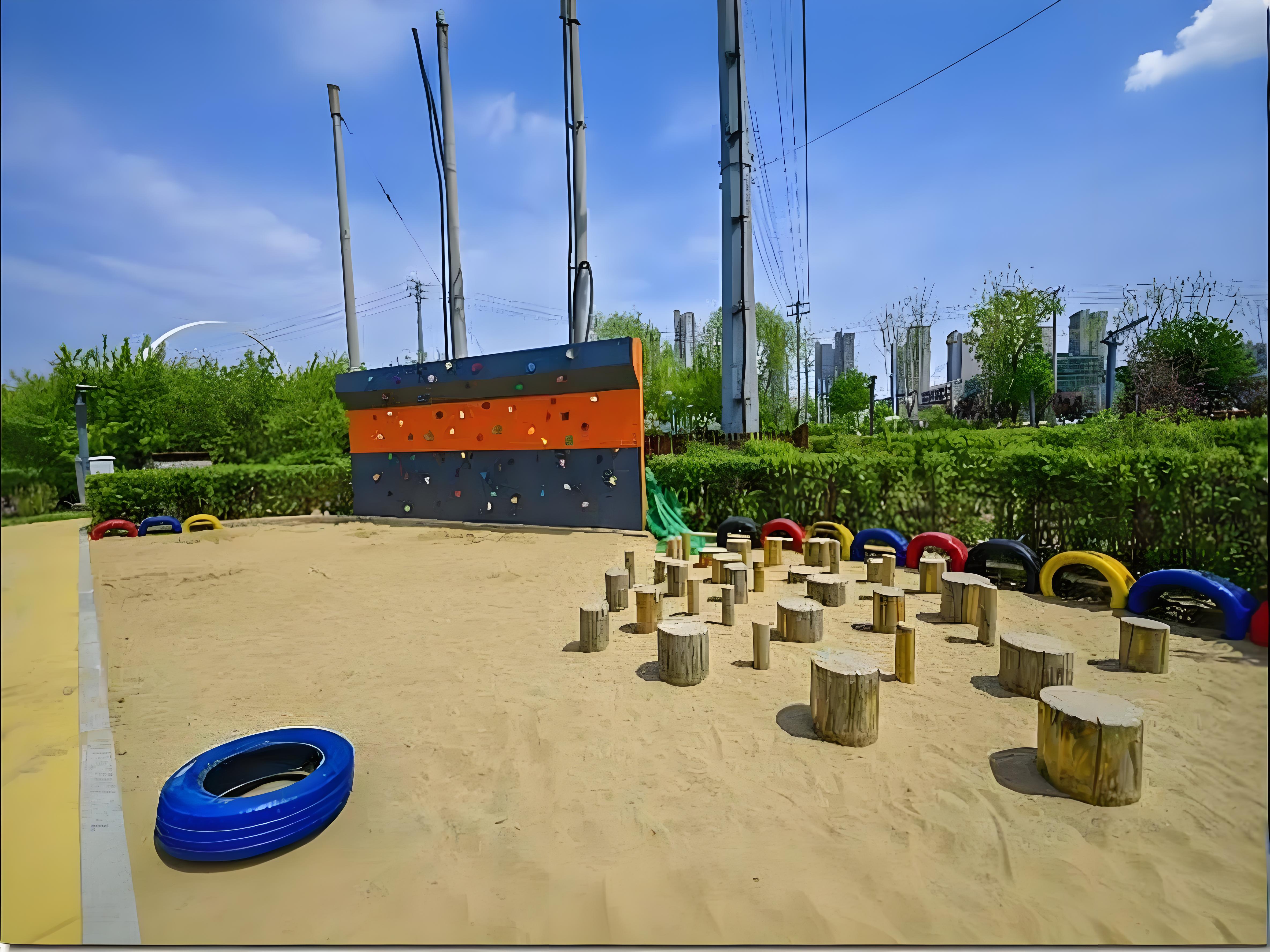 设置滑梯、攀爬架、摇摇马、跷跷板等基础设施,搭配小型攀岩墙和儿童敏捷训练器,满足不同年龄段儿童的运动需求;