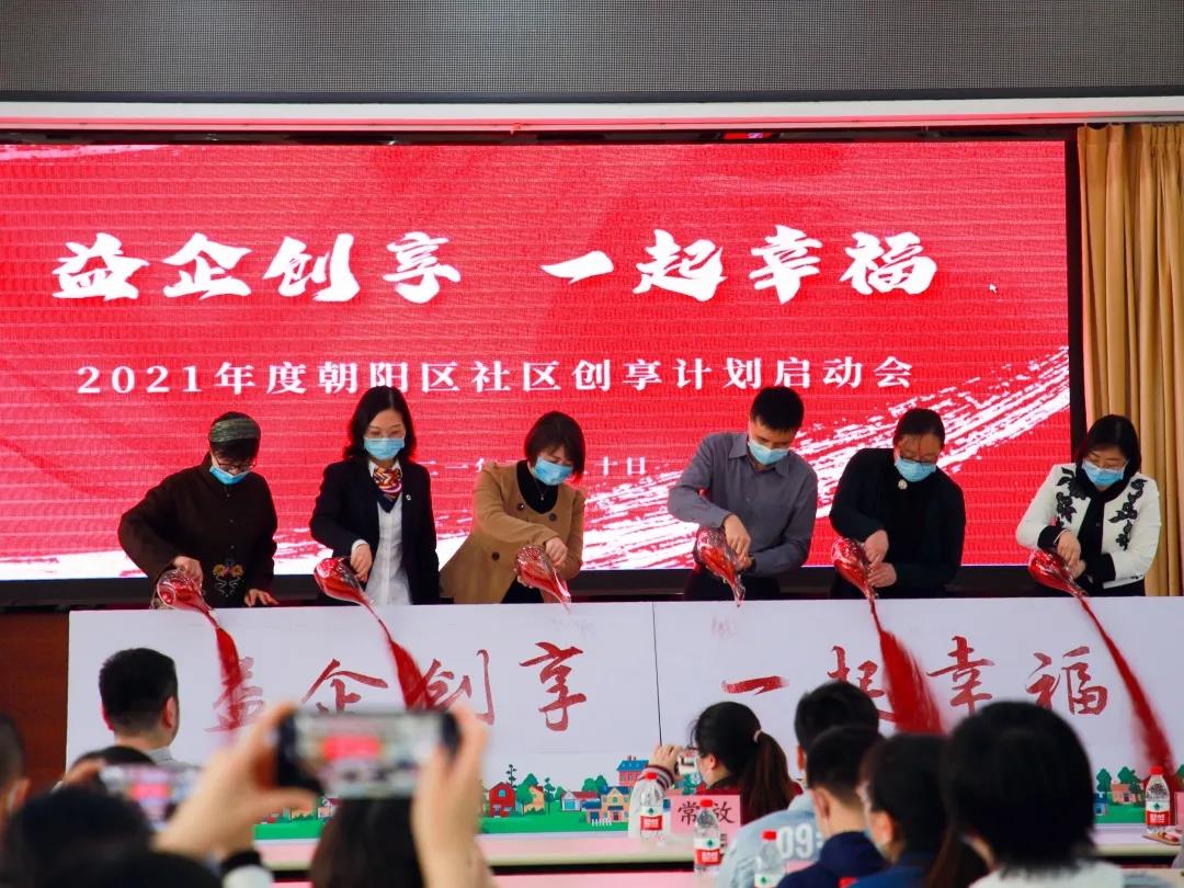 启动仪式上,朝阳区政府、朝阳区社区发展代表、企业三方共同以“流沙”倾注于“益企创享 一起幸福”的项目标语中,表达了未来三方将协同创建、管理、互惠的美好深意。