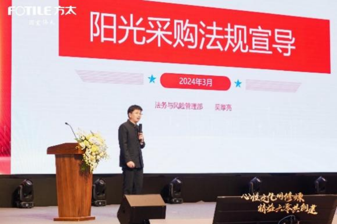 在“智慧采购、价值采购”的使命驱动下,方太集团采购管理部深化了对供应商的公正公平竞争环境,邀请方太集团执行委员、法务与风险管理部总监吴厚亮先生进行《阳光采购法规宣导》及案例分享,提升了采购工作的合规性和透明度。