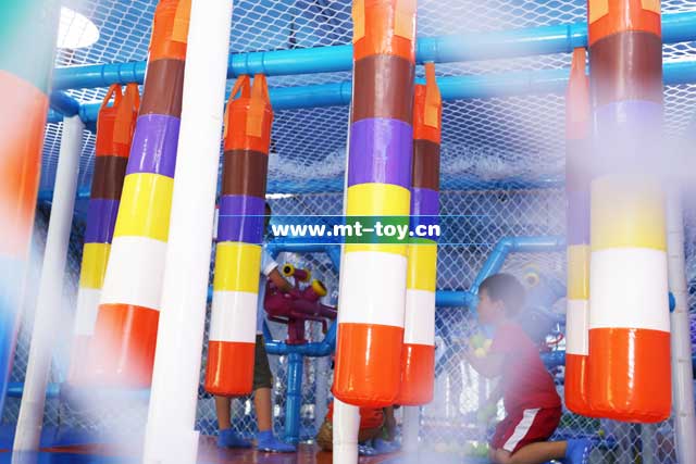 充满贵族气息的紫色大面积渲染,在紫色中融入活跃的黄色做点缀,营造了一种醒目、愉悦氛围,整个搭配现代,时尚,大气而又简洁,体现了该淘气堡的“高、大、尚”