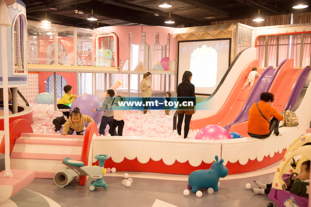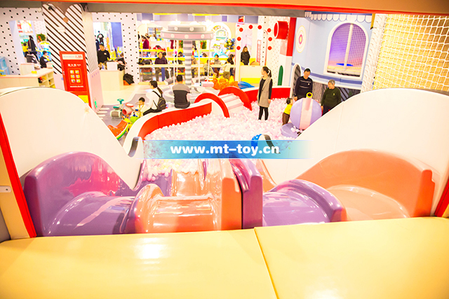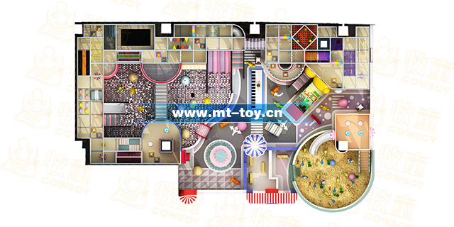 充满贵族气息的紫色大面积渲染,在紫色中融入活跃的黄色做点缀,营造了一种醒目、愉悦氛围,整个搭配现代,时尚,大气而又简洁,体现了该淘气堡的“高、大、尚”