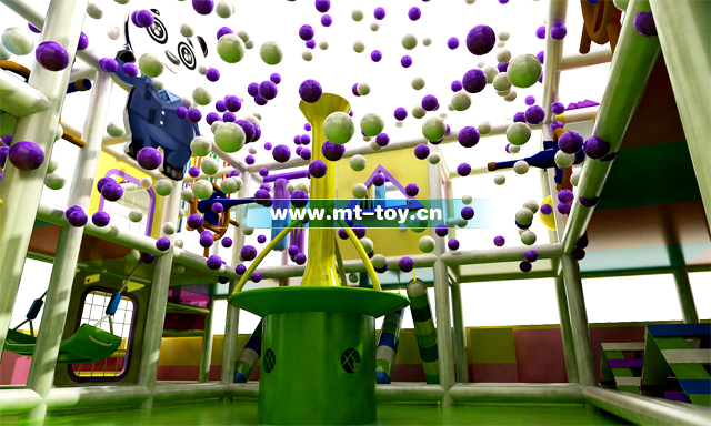 充满贵族气息的紫色大面积渲染,在紫色中融入活跃的黄色做点缀,营造了一种醒目、愉悦氛围,整个搭配现代,时尚,大气而又简洁,体现了该淘气堡的“高、大、尚”