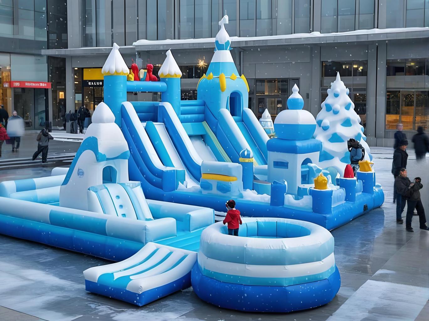 可快速拆装的卡通造型充气堡,占地15-20㎡,支持钻爬滑跳多元玩法,抖音打卡视频播放量破亿案例已验证传播力