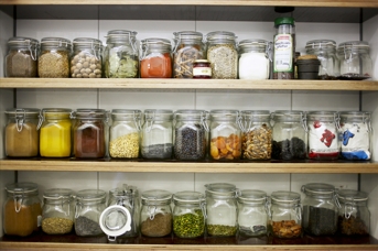 选择塑料方盒、玻璃罐子之类的小型密闭容器,可以收纳谷物食材、香料等等,还能防止食材受潮发霉。