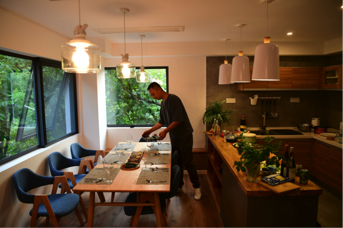 除了橱柜、墙面,还有一个增加厨房收纳的好帮手——厨房专用小推车。它相当于一个移动的小中岛,可以放置正在腌制的肉类、待切的水果,随时随地随需要移动,不用时又可以折叠收起来,非常方便。