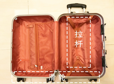 在打包行李的时候,较重的物品(例如电脑包)尽量摆在底部靠滑轮处,以及靠拉杆处。这样能避免头重脚轻,行李箱前倾的情况发生。