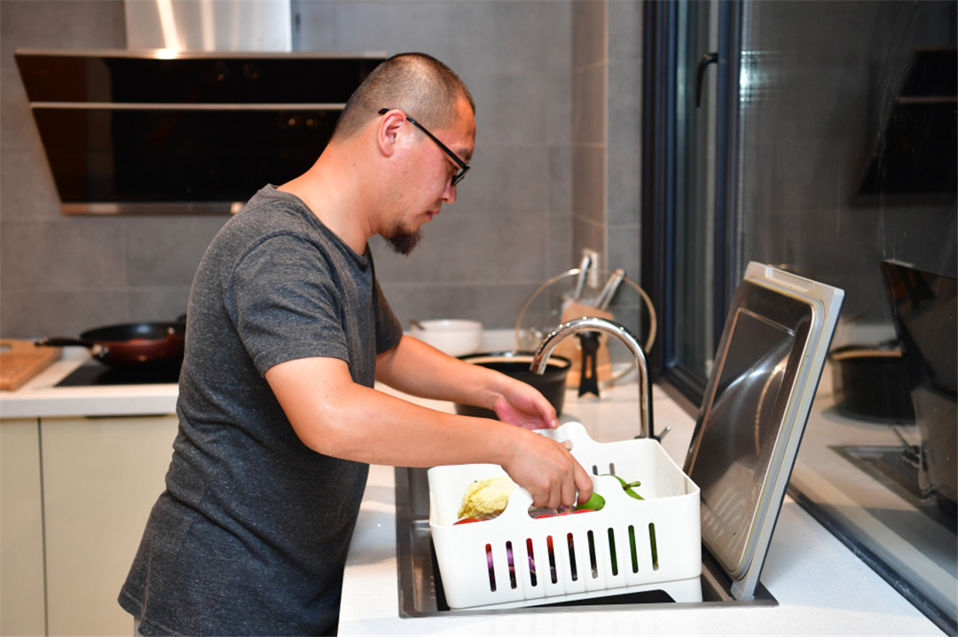 云溪上的开放式厨房拥有开阔的空间,窗明几净,不再是以往那个熙熙攘攘的小空间,并且还安装了现代化的厨电,实用性和美之间尺度平衡得当,这是余味理想中厨房的样子,也是最想送给所有朋友的居住体验。 在这个现代化厨房中,最深得余味之心的厨电便是方太水槽洗碗机,它是全家人的“懒人福音”,它也确实为余味开启了一个新的“感官世界”。因为这台洗碗机不仅会洗碗,还能去果蔬农残*。